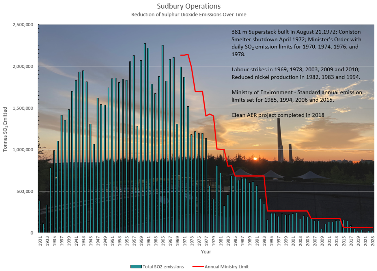 Furthermore, Vale and Glencore are subject to Regulation 652/21 Air Pollution - Discharge of SO₂ from Nickel Smelting and Refining Facilities in the Sudbury Area, as described on the Environmental Registry of Ontario.